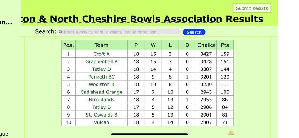 Warrington and District Senior’s Bowls League