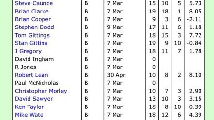 A special mention goes to Brian Clarke, Tom Gittins and Rob Lean who won 41 of the 47 games played between them as shown below. Well done also to the rest of the squad under the captaincy of Dave Sawyer.